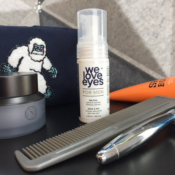 We Love Eyes Eyelid Foaming Cleanser for Men as a part of a men's dopp kit